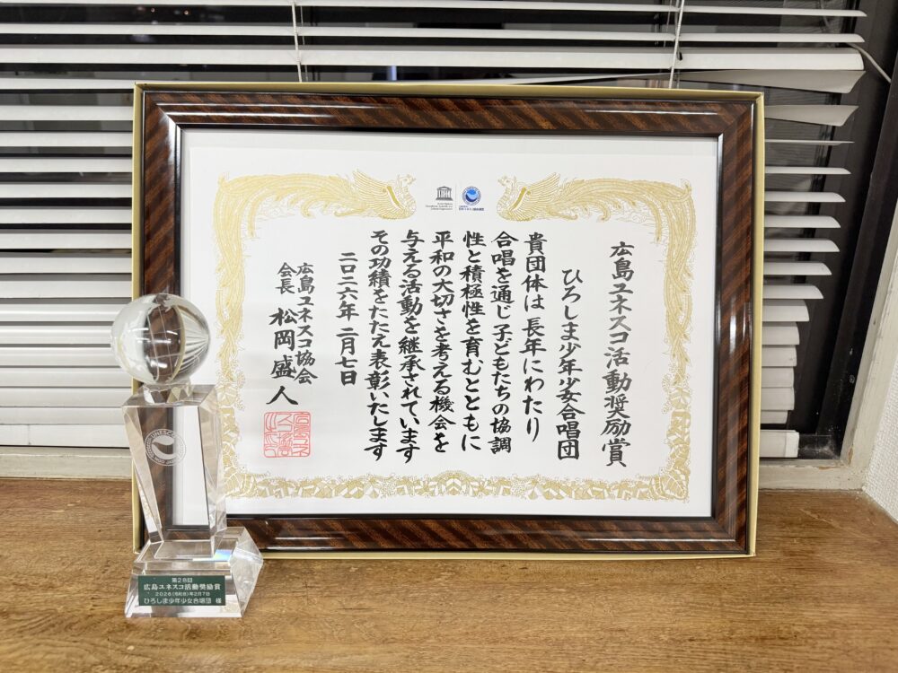 この度ひろしま少年少女合唱団は、【広島ユネスコ活動奨励賞】を受賞しました✨